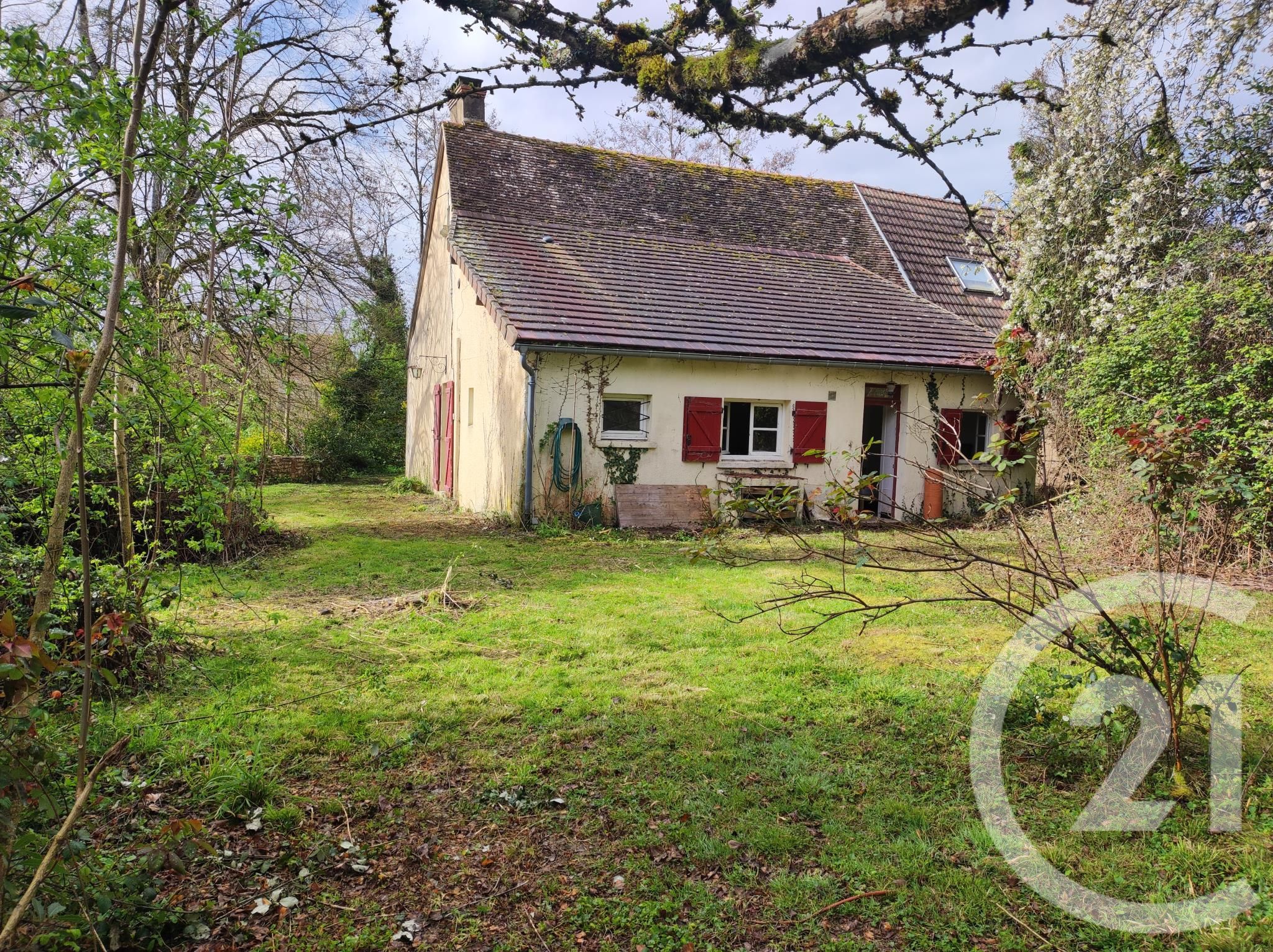 Quelques rafraichissements à faire (portes d'entrées et fenêtres du rez-de-chaussée et plafond d'un chambre). L'étage est sans travaux. Très beau jardin arboré et une dépendance préfabriquée à remettre en état, idéale pour locations saisonnière ou bien bureau avec petit atelier).